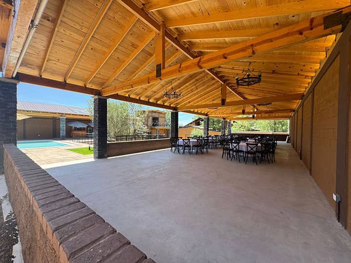 Contamos con bocina, barras para bebidas, área de banquetes, asadores, estufas, mobiliario, baños y estacionamiento amplio, listo para tu evento.